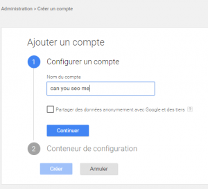 Après vous être inscrit, Google Tag Manager vous propose de créer un compte, soit un conteneur. Il est possible de créer un conteneur pour un site ou pour une application (android ou ios). Ici, c’est un site, on choisit donc Web.